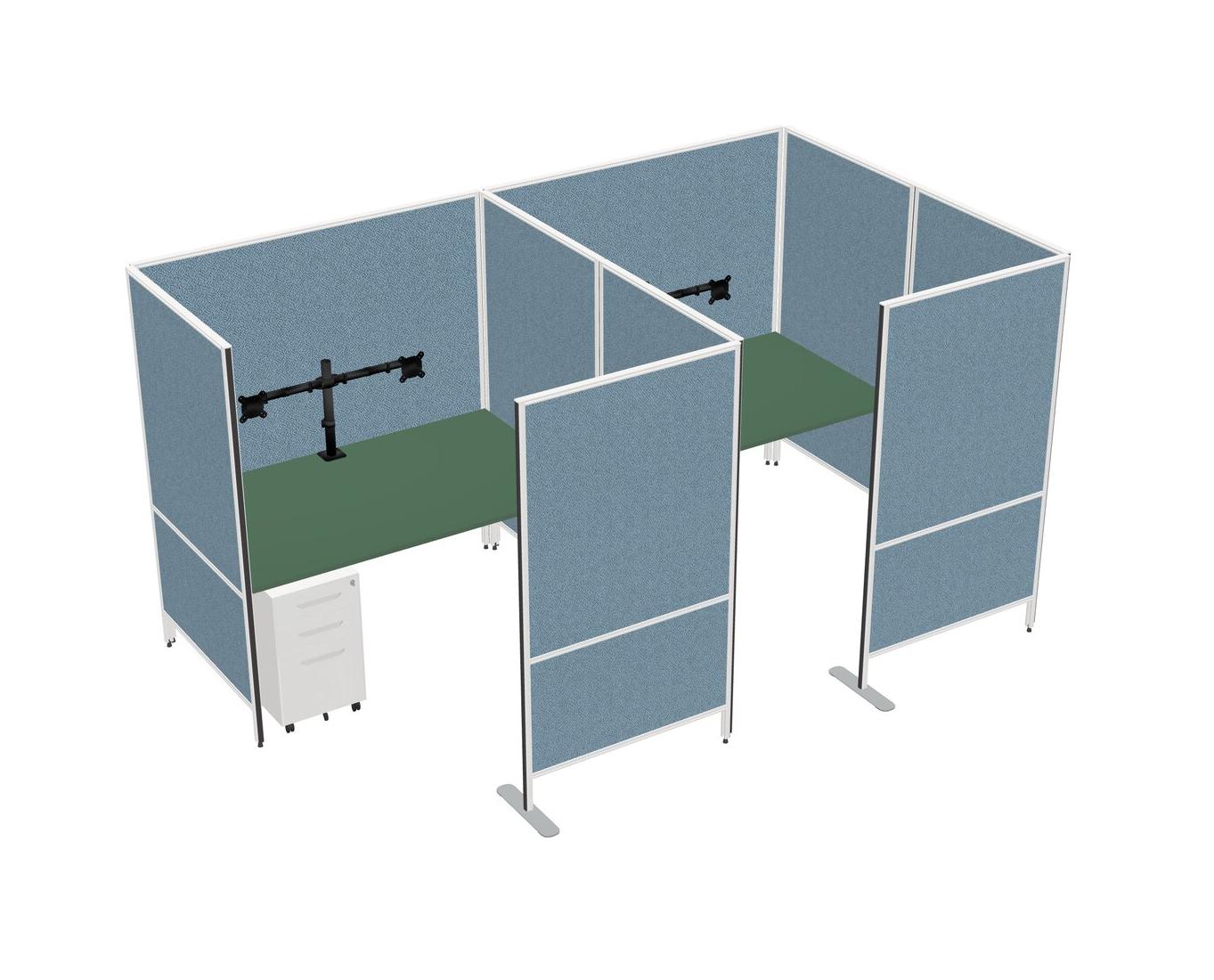 Green Flexible Panel System With Privacy For 2 + Metal Mobile Drawers + Monitor Arm (double Arms)