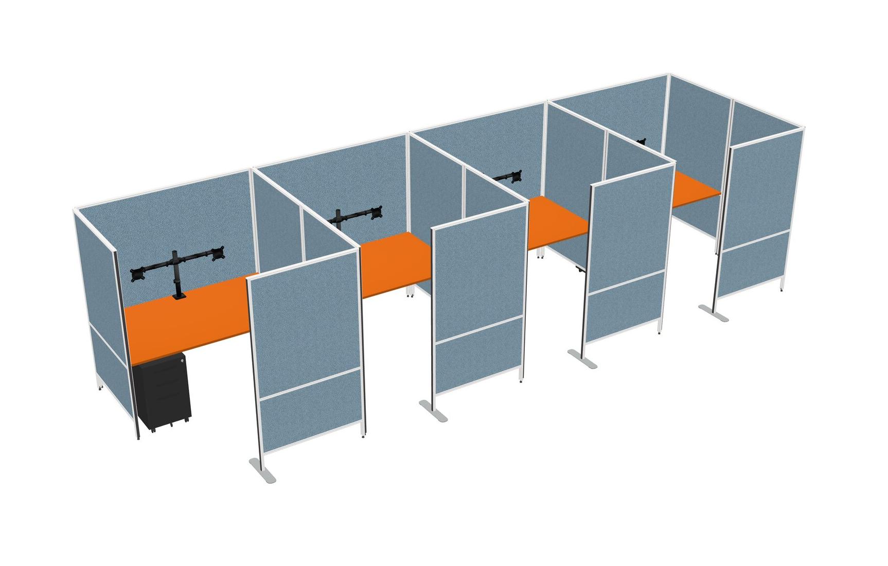 Orange Flexible Panel System With Privacy For 4 + Metal Mobile Drawers + Monitor Arm (double Arms)