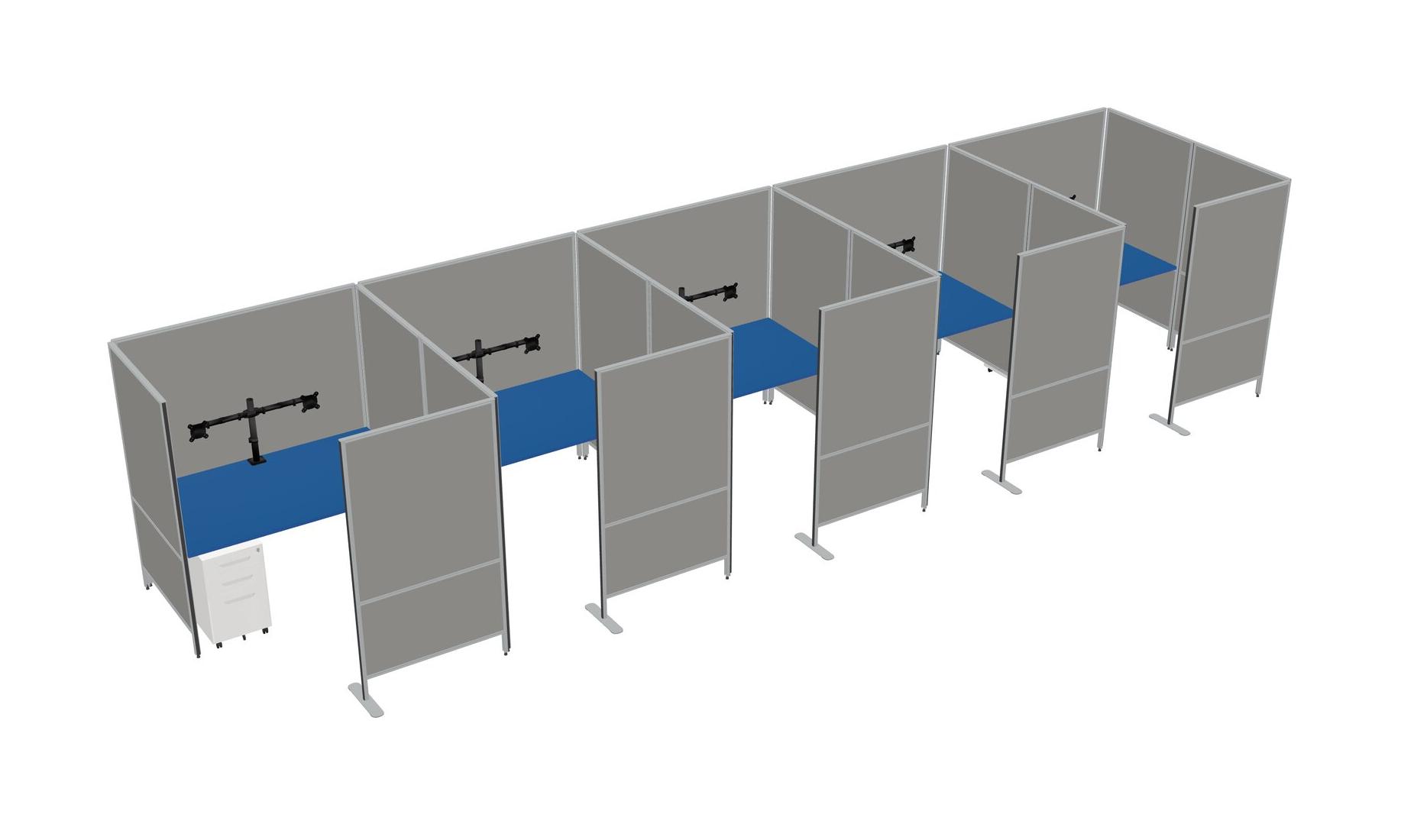 Prism Blue Flexible Panel System With Privacy For 5 + Metal Mobile Drawers + Monitor Arm (double Arms)