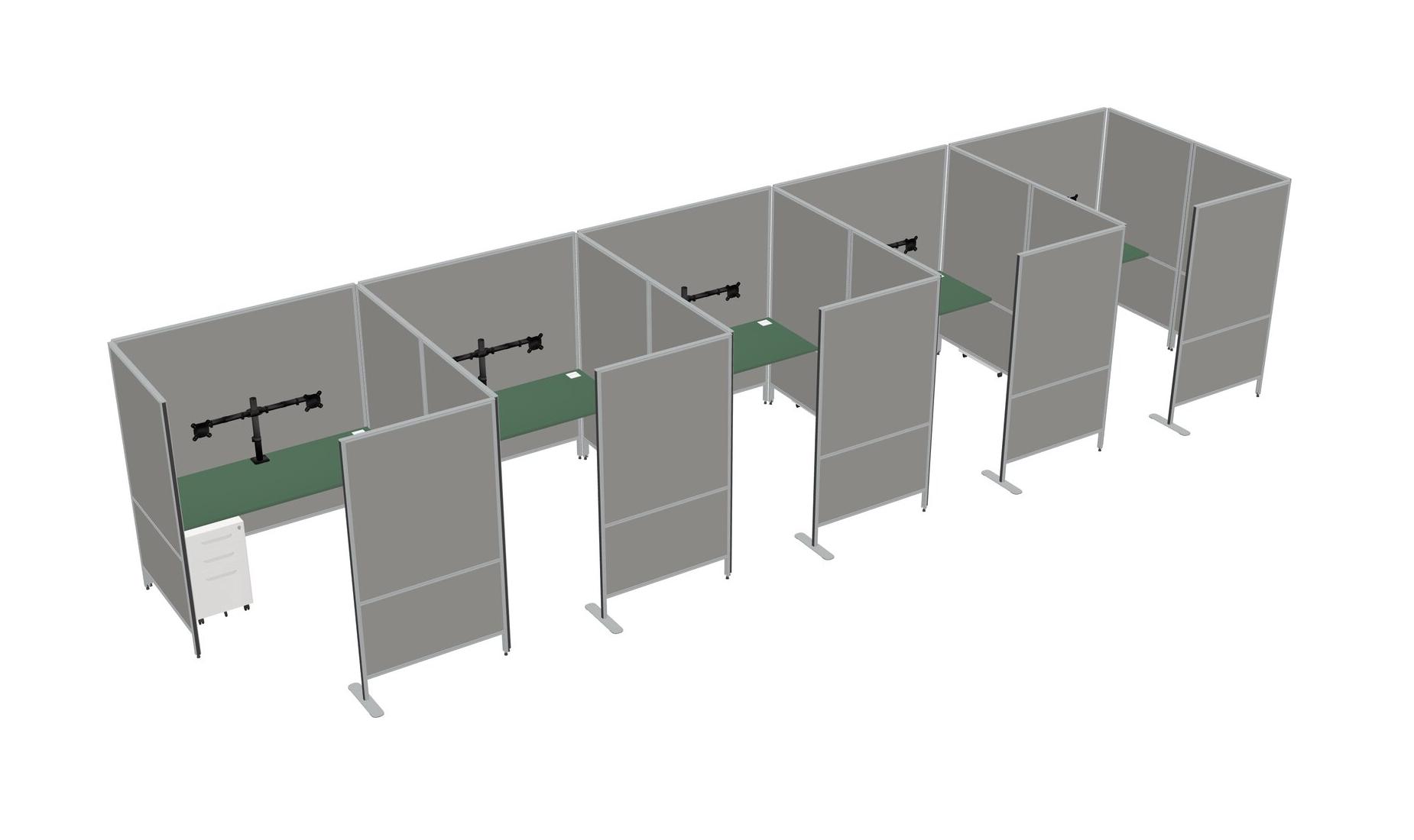 Green Flexible Panel System With Privacy For 5 + Metal Mobile Drawers + Monitor Arm (double Arms)
