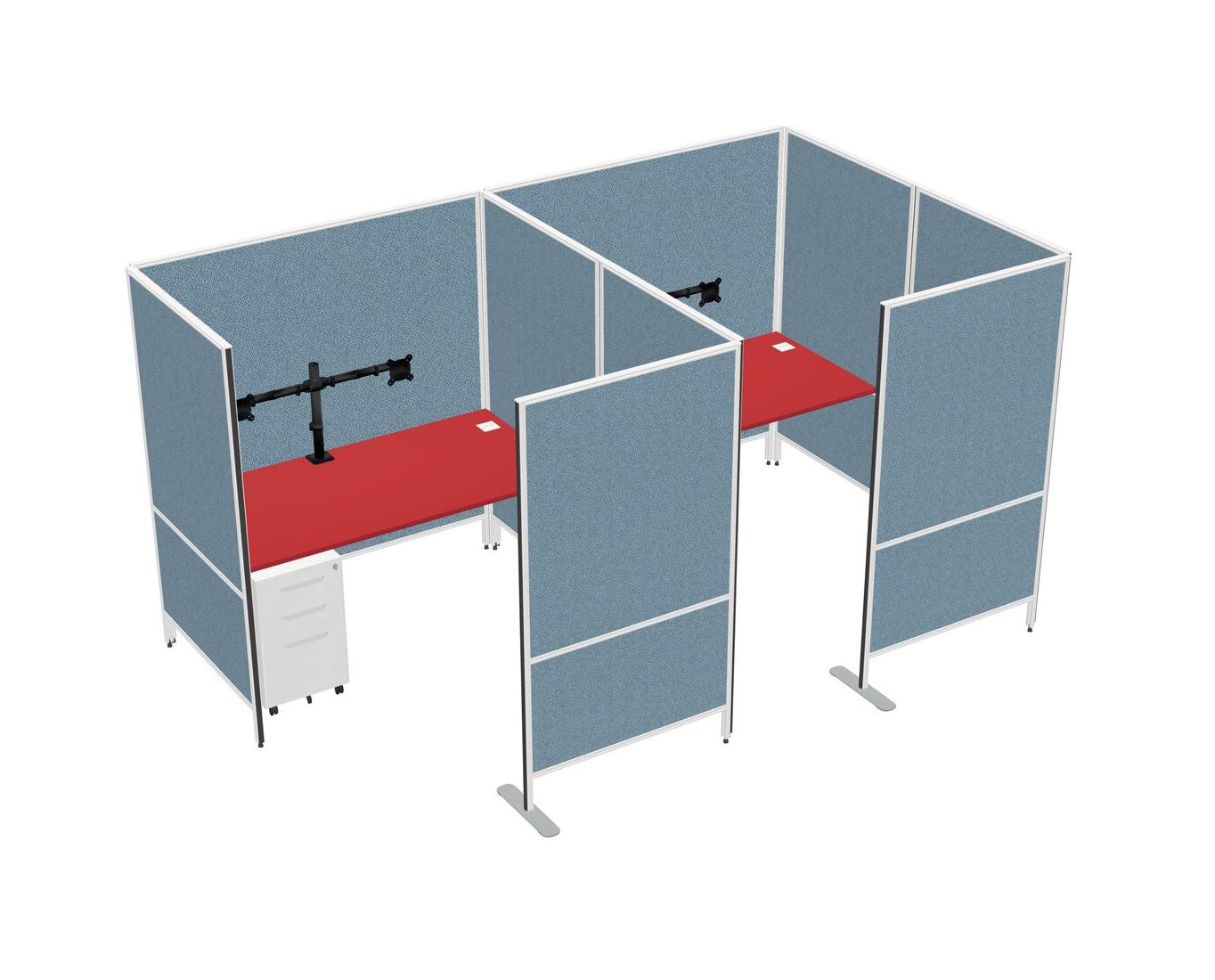 Prism Red Flexible Panel System With Privacy For 2 + Metal Mobile Drawers + Monitor Arm (double Arms)