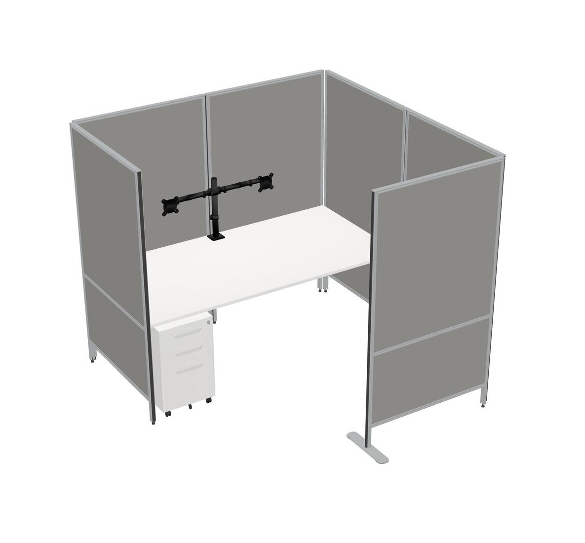 White Flexible Panel System With Privacy For 1 + Metal Mobile Drawers + Monitor Arm (double Arms)