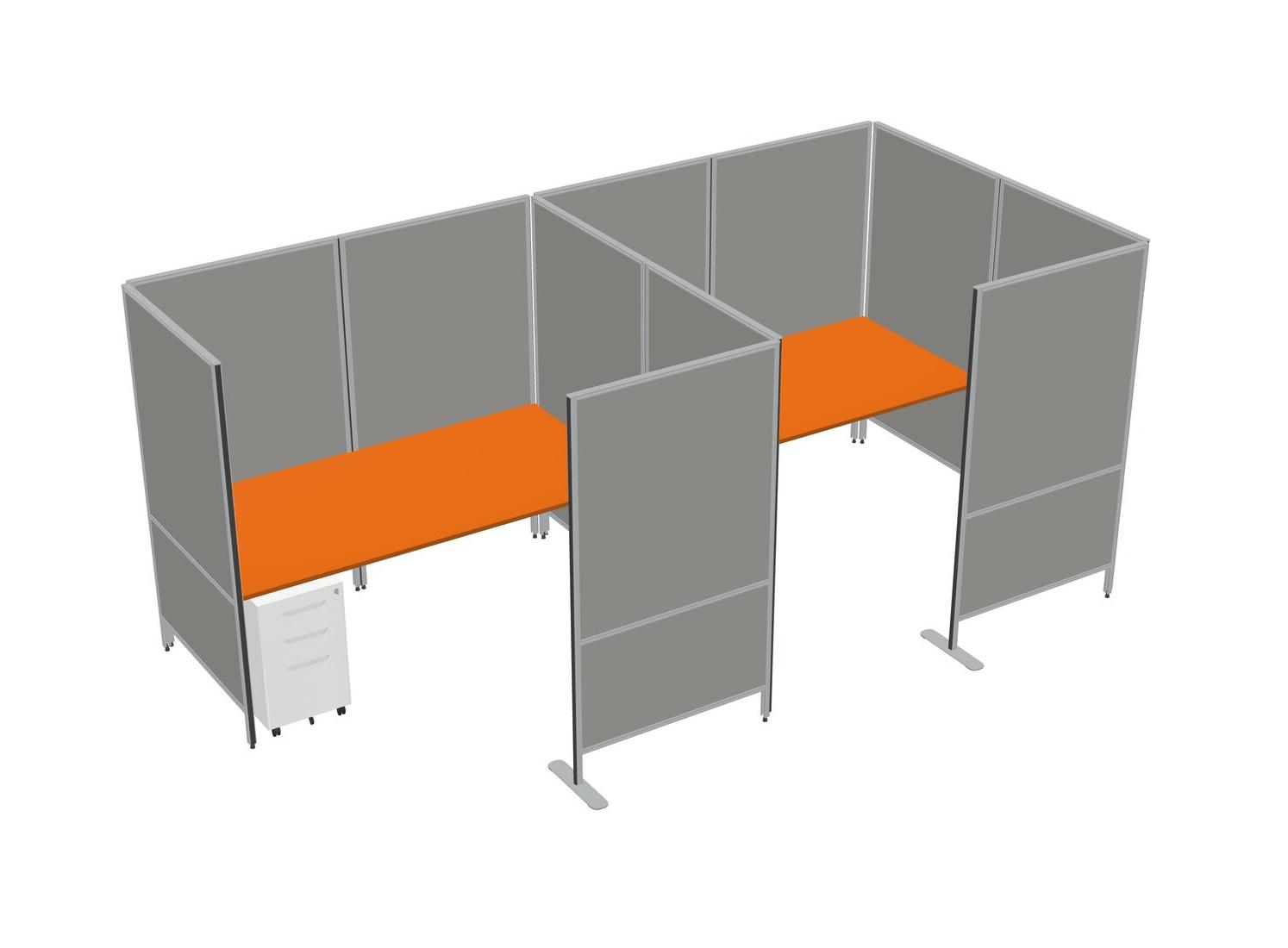 Orange Flexible Panel System With Privacy For 2 + Metal Mobile Drawers