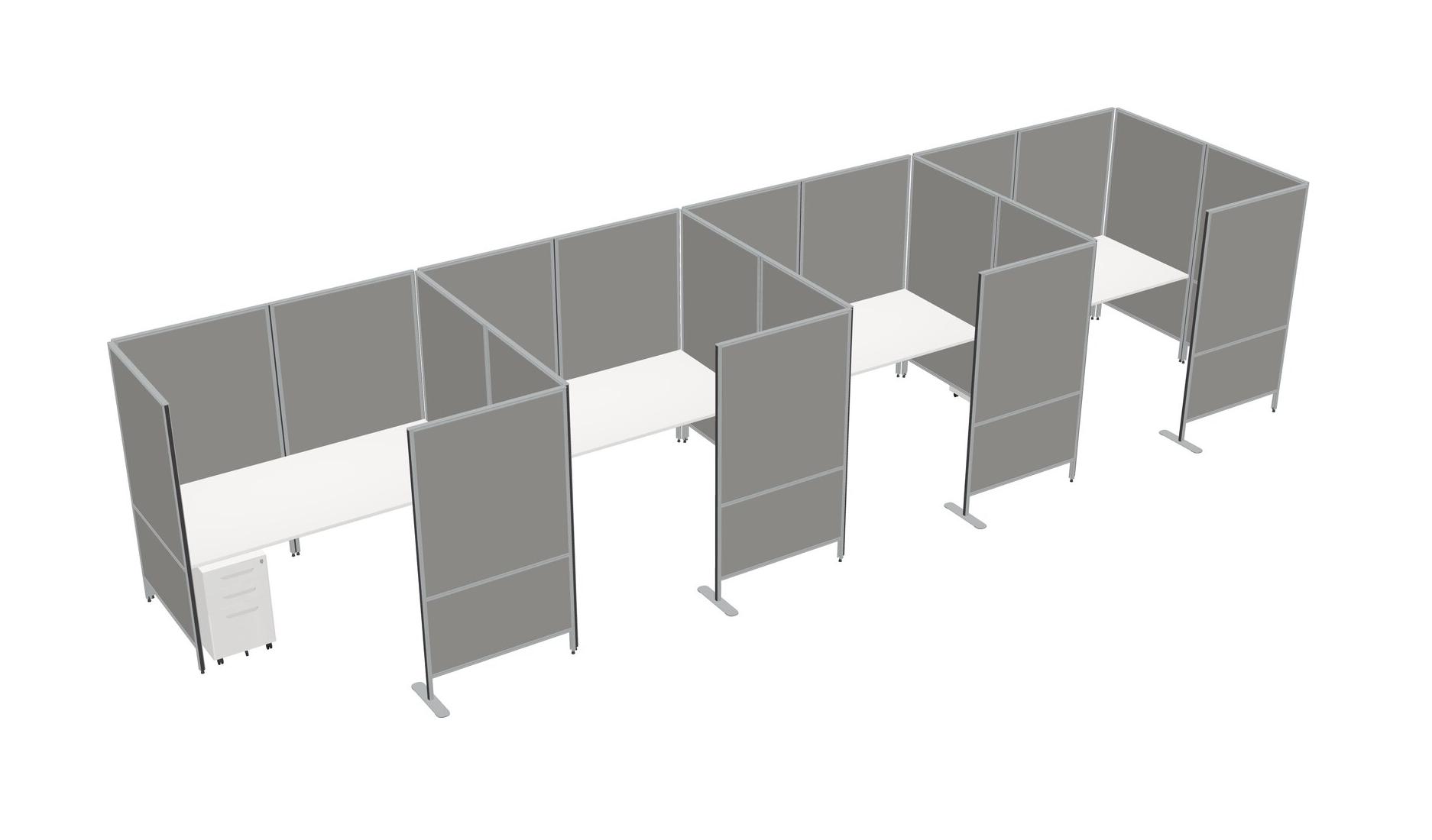 White Flexible Panel System With Privacy For 4 + Metal Mobile Drawers