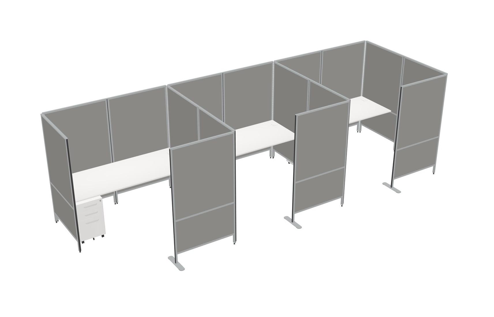 White Flexible Panel System With Privacy For 3 + Metal Mobile Drawers