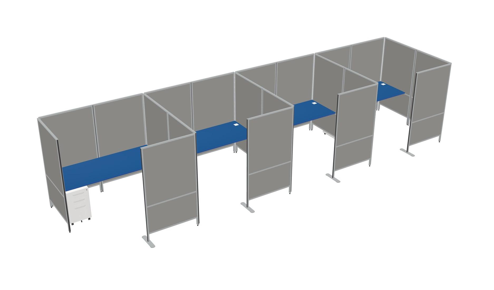Prism Blue Flexible Panel System With Privacy For 4 + Metal Mobile Drawers