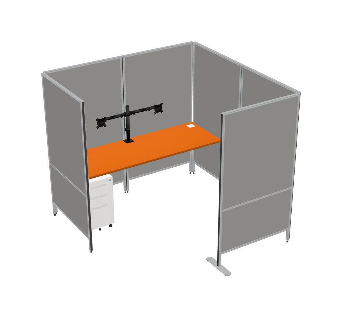 Orange Flexible Panel System With Privacy For 1 + Metal Mobile Drawers + Monitor Arm (double Arms)