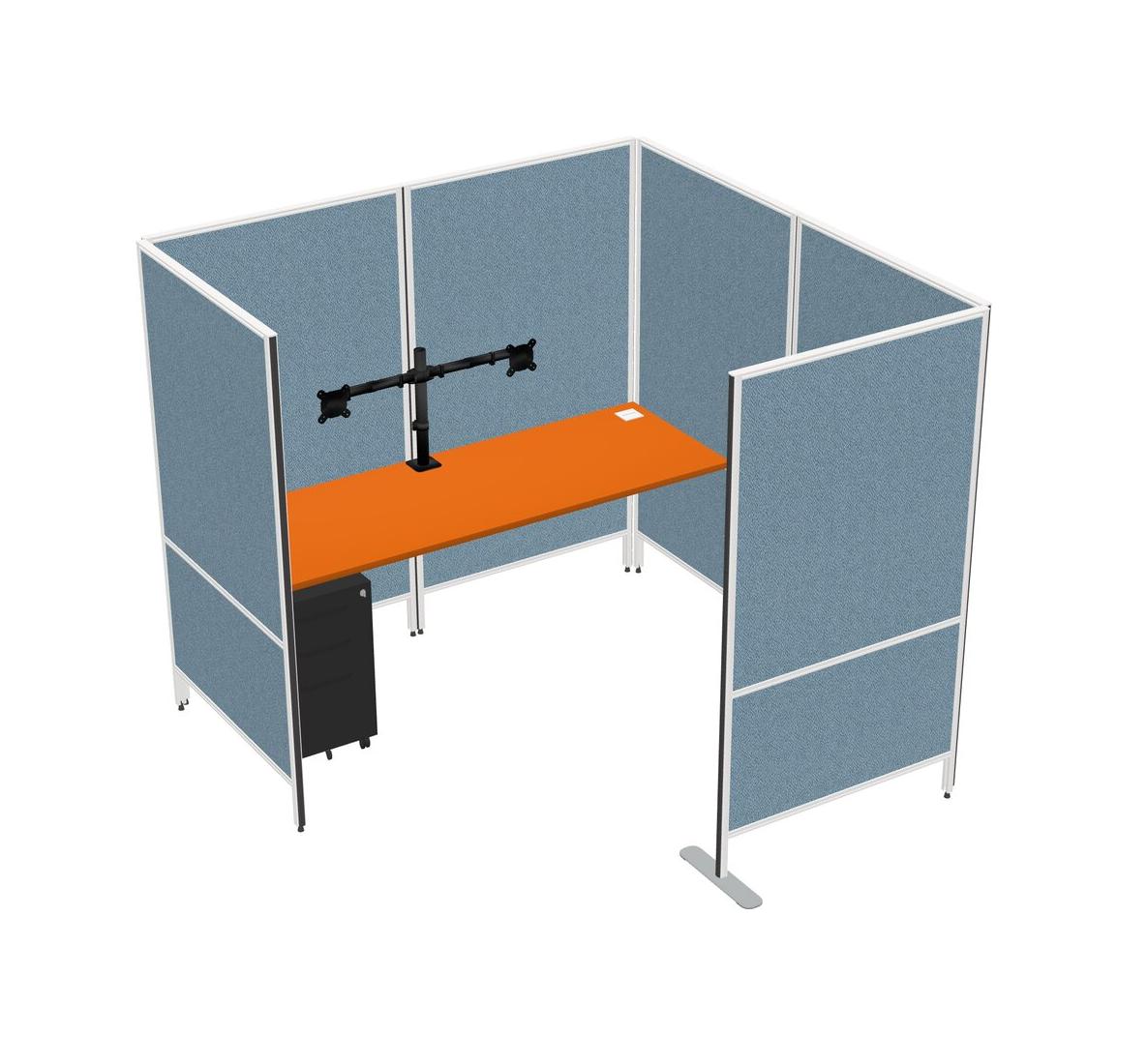 Orange Flexible Panel System With Privacy For 1 + Metal Mobile Drawers + Monitor Arm (double Arms)