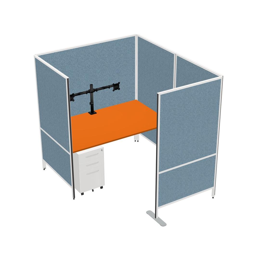 Orange Flexible Panel System With Privacy For 1 + Metal Mobile Drawers + Monitor Arm (double Arms)