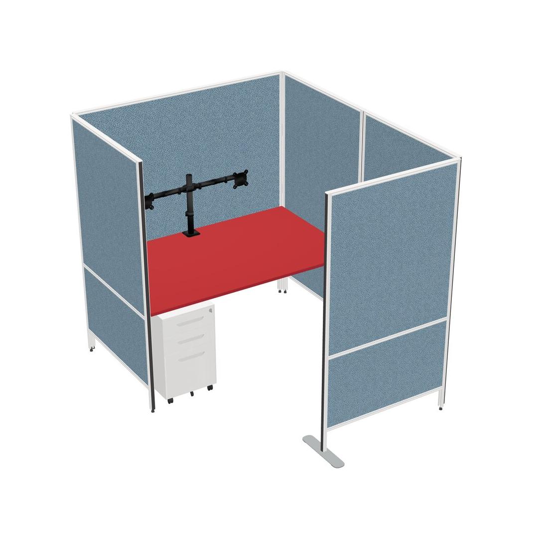 Prism Red Flexible Panel System With Privacy For 1 + Metal Mobile Drawers + Monitor Arm (double Arms)