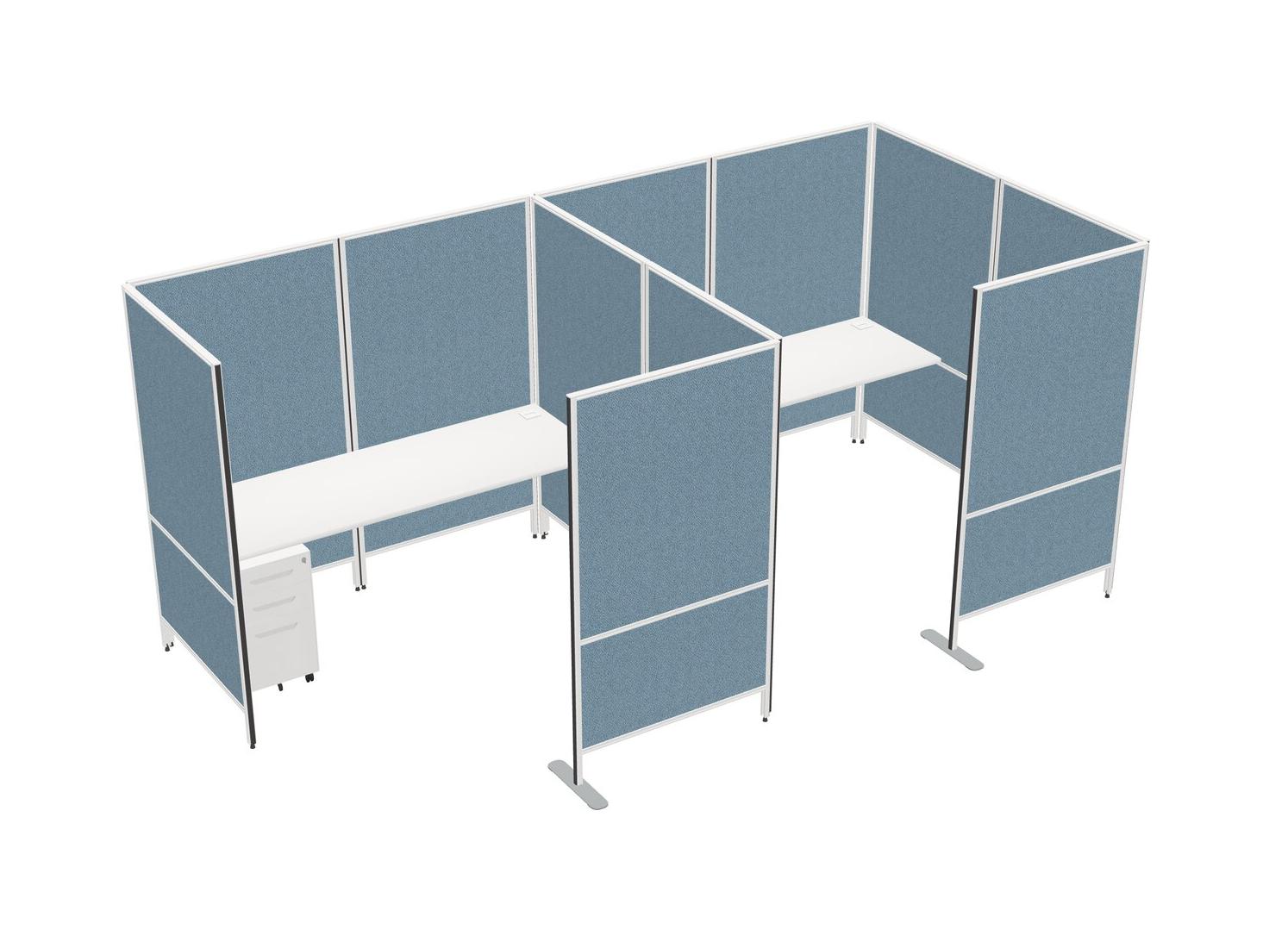 White Flexible Panel System With Privacy For 2 + Metal Mobile Drawers