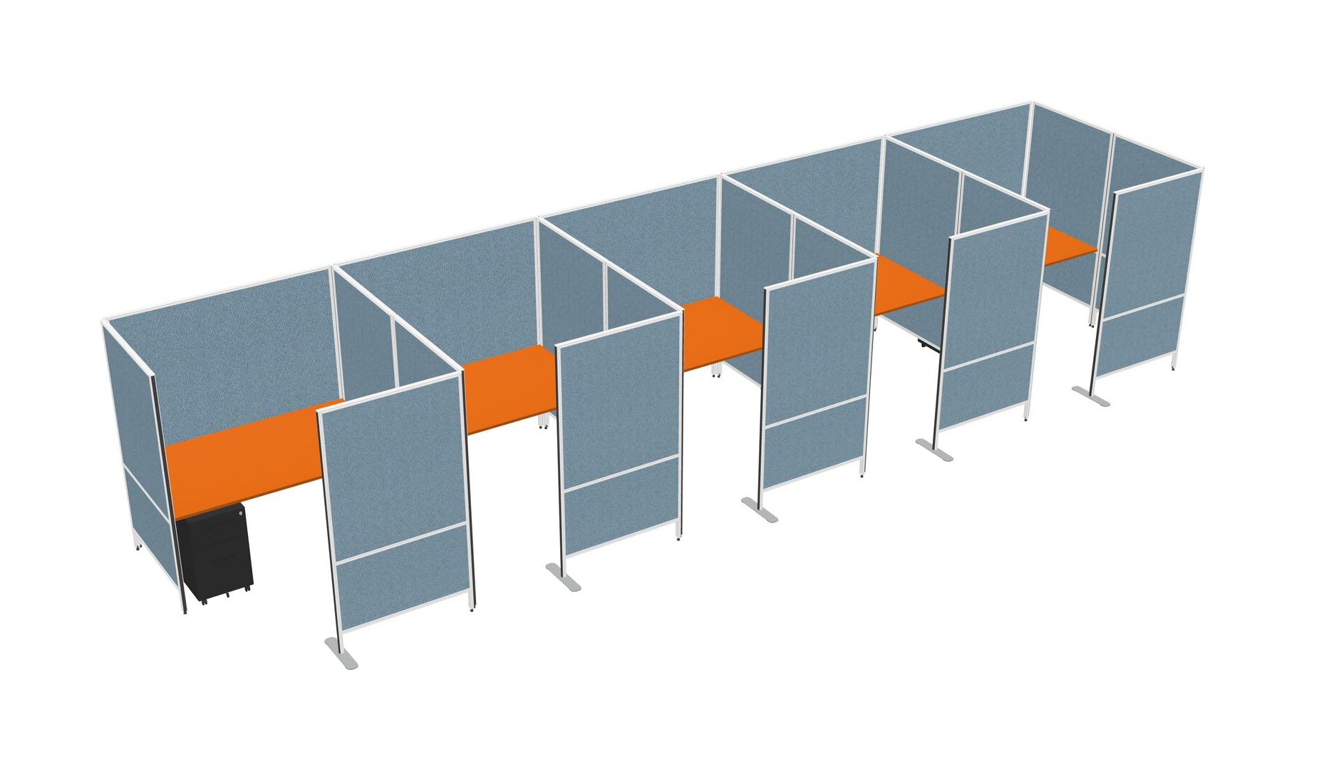Orange Flexible Panel System With Privacy For 5 + Metal Mobile Drawers
