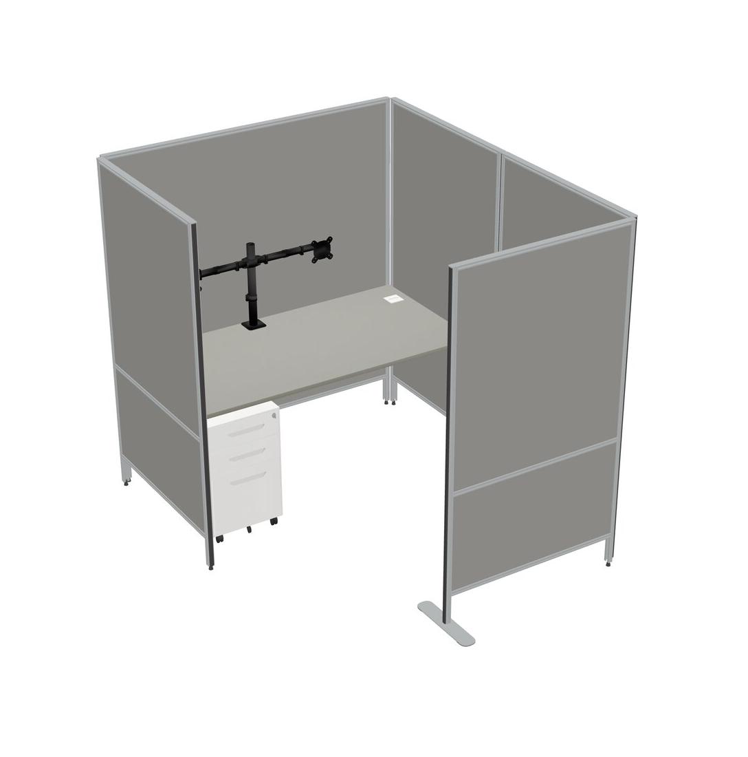 Grey Shadows Flexible Panel System With Privacy For 1 + Metal Mobile Drawers + Monitor Arm (double Arms)