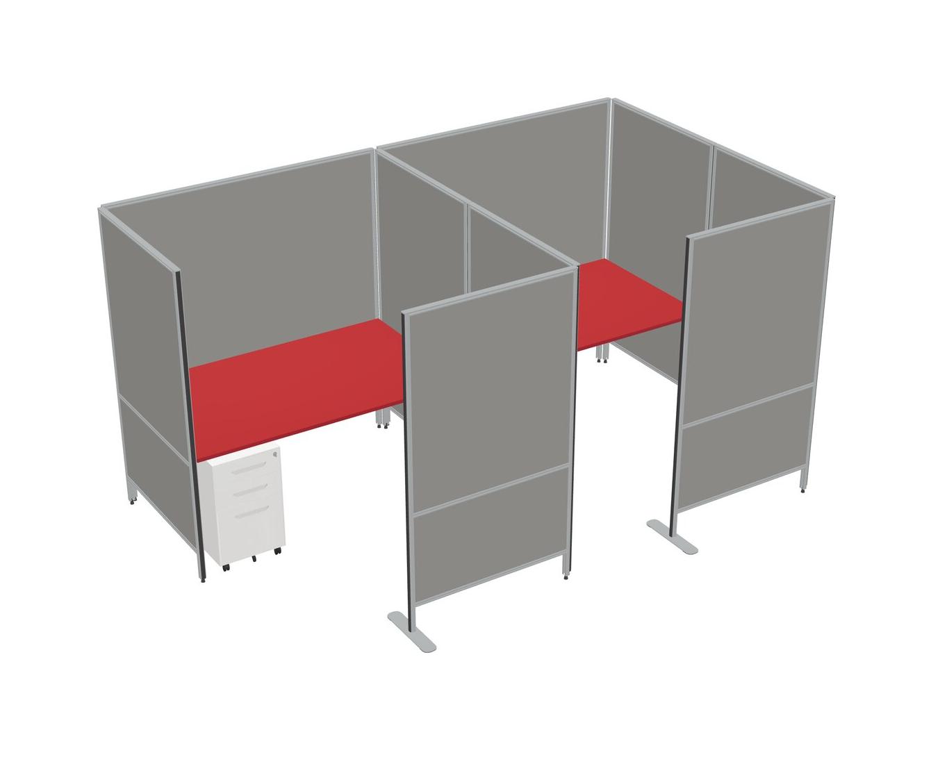 Prism Red Flexible Panel System With Privacy For 2 + Metal Mobile Drawers