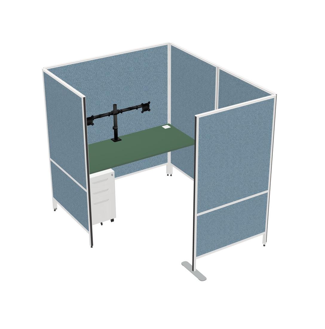 Green Flexible Panel System With Privacy For 1 + Metal Mobile Drawers + Monitor Arm (double Arms)