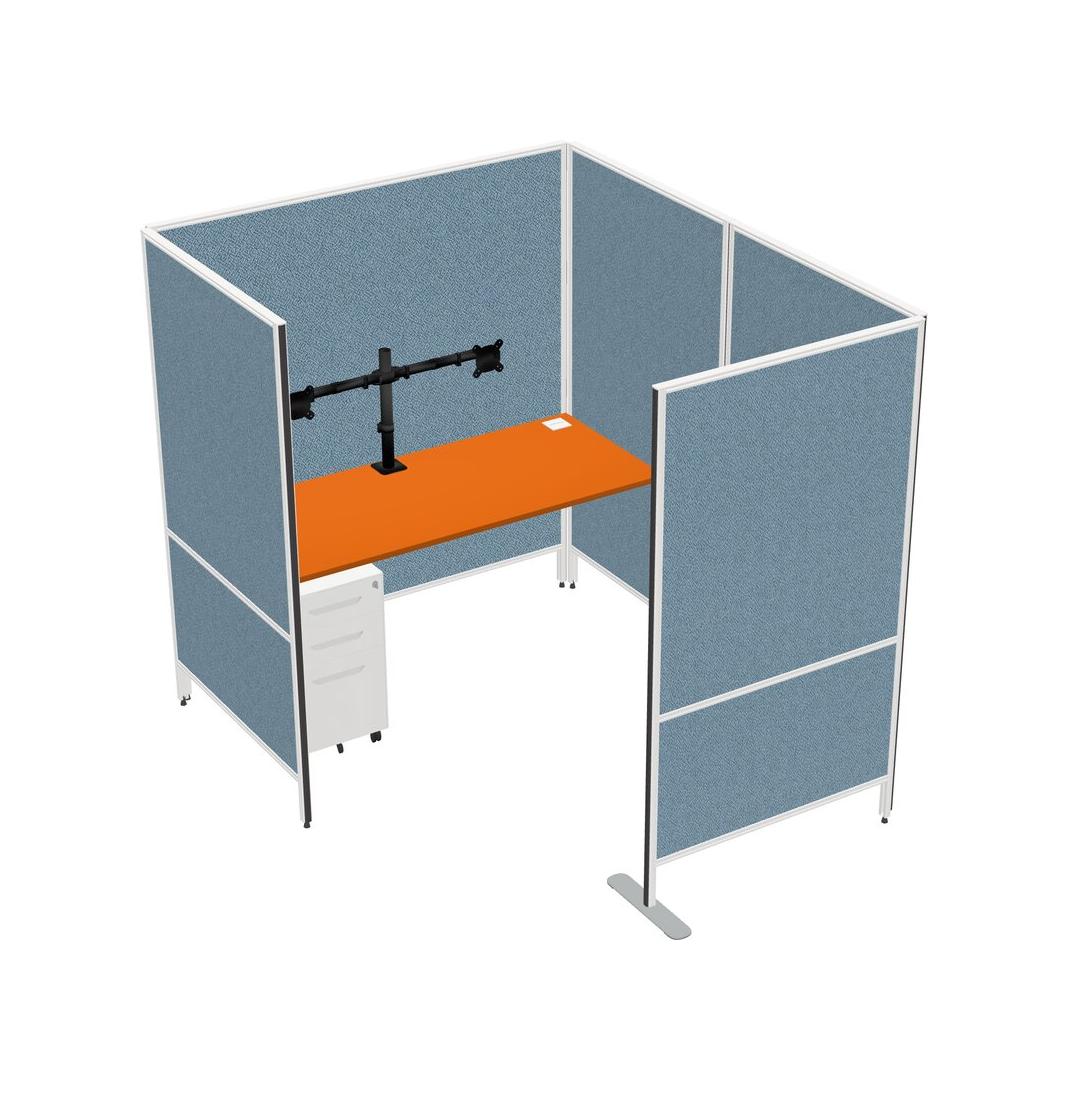Orange Flexible Panel System With Privacy For 1 + Metal Mobile Drawers + Monitor Arm (double Arms)
