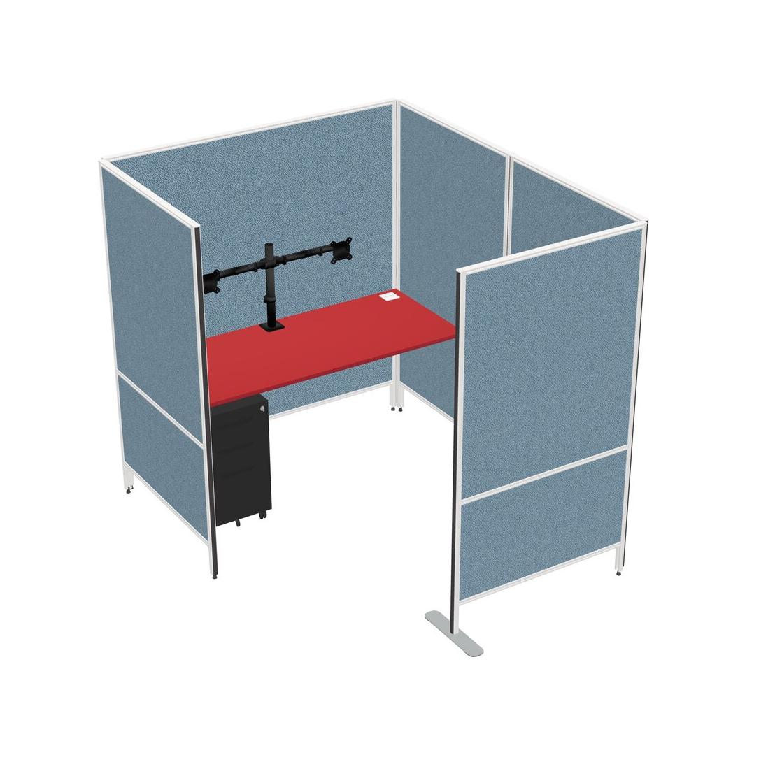 Prism Red Flexible Panel System With Privacy For 1 + Metal Mobile Drawers + Monitor Arm (double Arms)