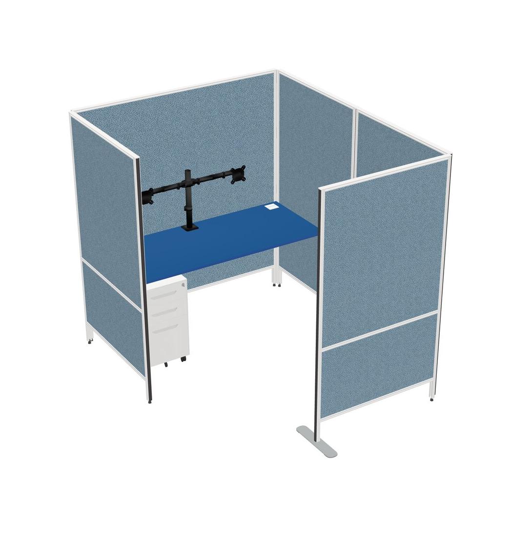 Prism Blue Flexible Panel System With Privacy For 1 + Metal Mobile Drawers + Monitor Arm (double Arms)