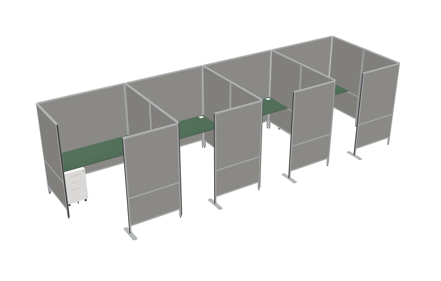 Green Flexible Panel System With Privacy For 4 + Metal Mobile Drawers