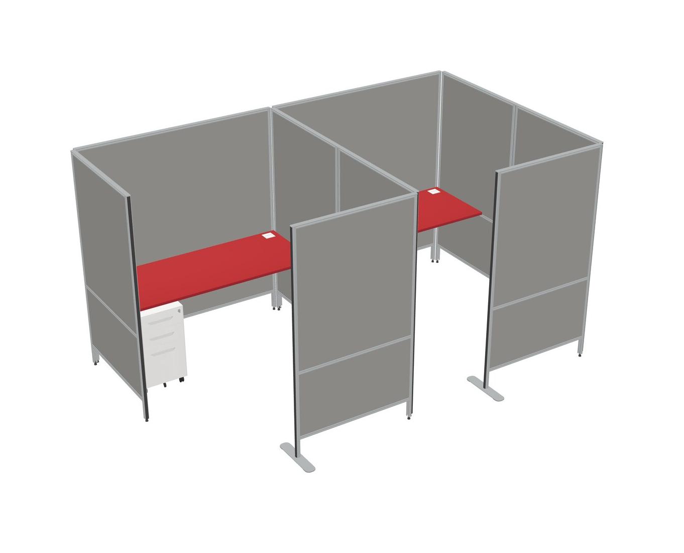 Prism Red Flexible Panel System With Privacy For 2 + Metal Mobile Drawers