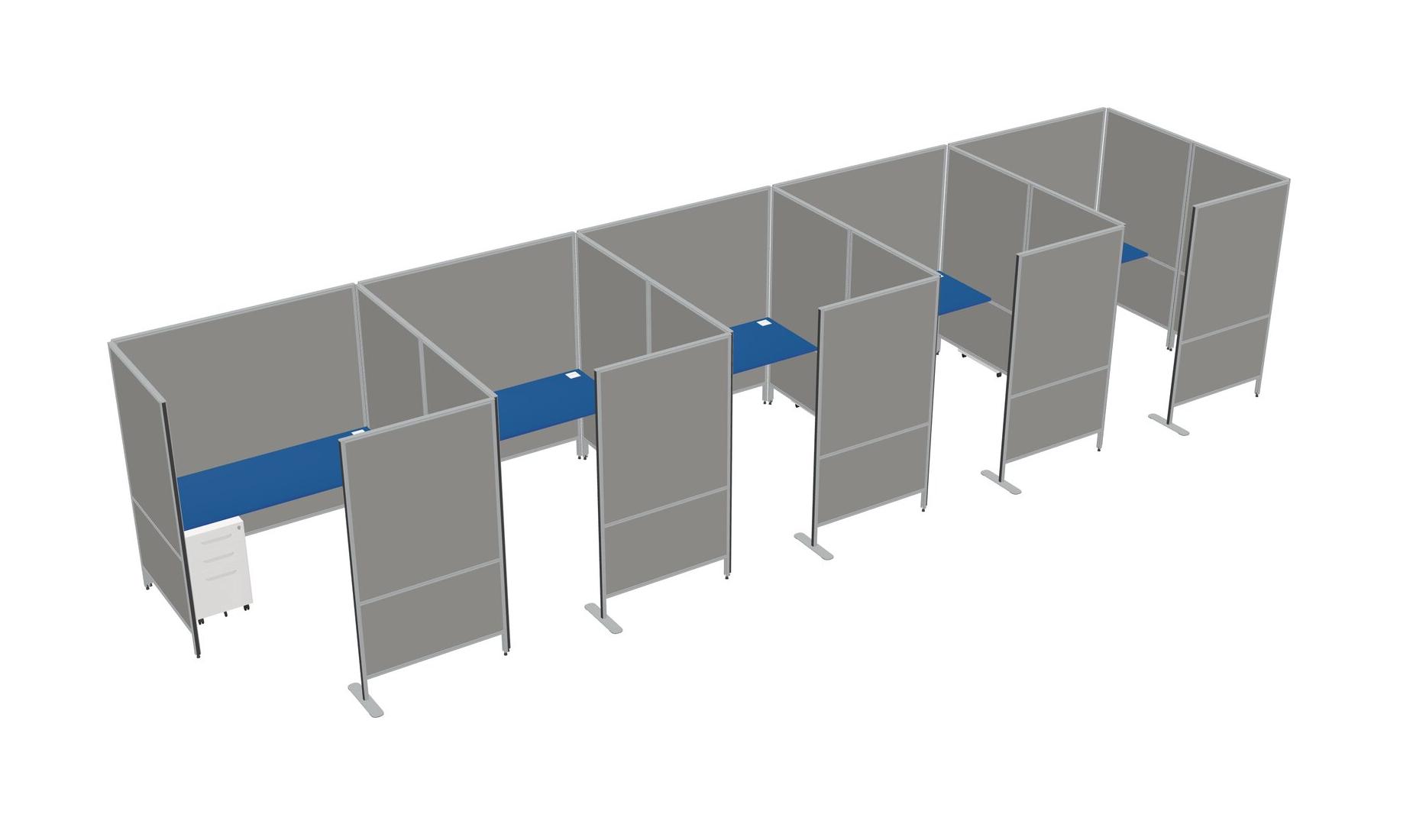 Prism Blue Flexible Panel System With Privacy For 5 + Metal Mobile Drawers