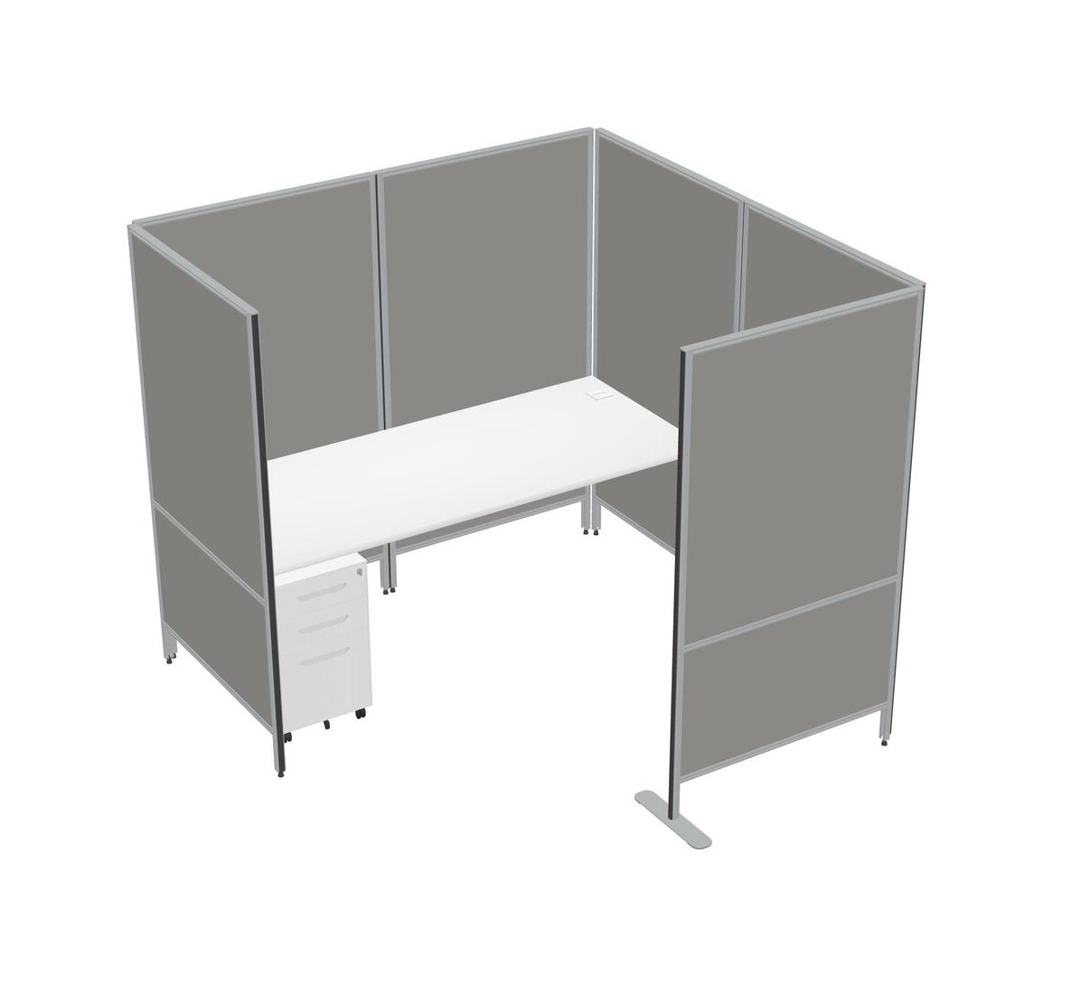 White Flexible Panel System With Privacy For 1 + Metal Mobile Drawers