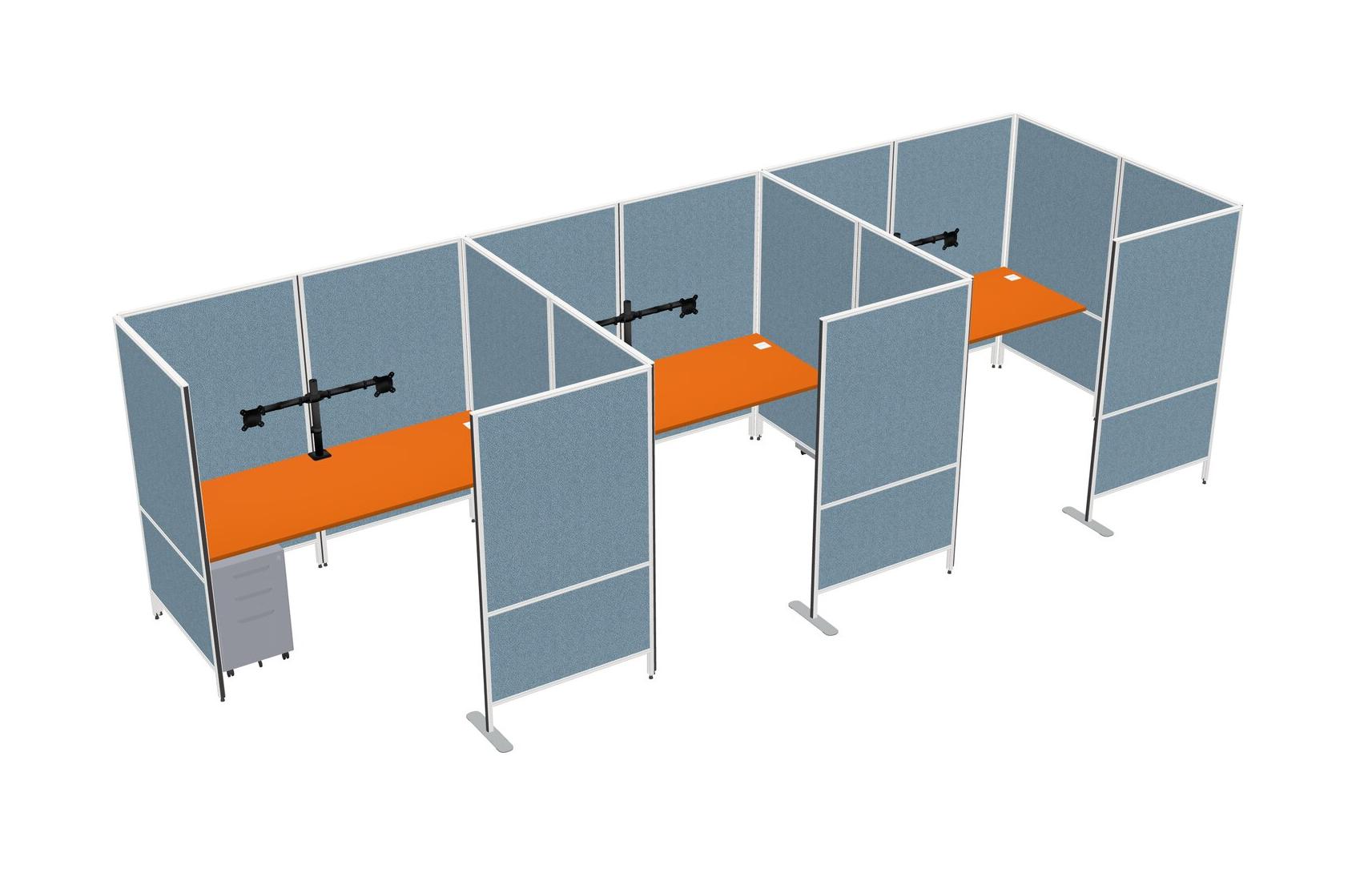 Orange Flexible Panel System With Privacy For 3 + Metal Mobile Drawers + Monitor Arm (double Arms)