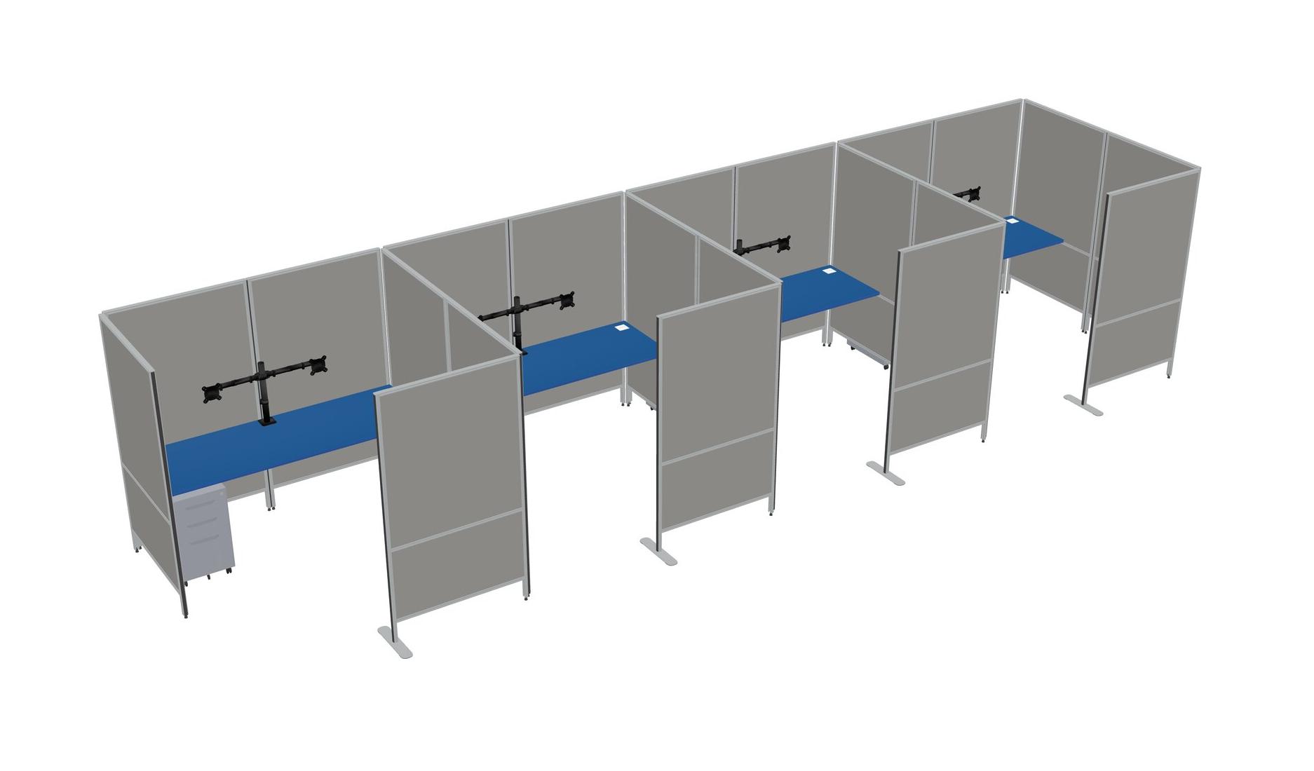 Prism Blue Flexible Panel System With Privacy For 4 + Metal Mobile Drawers + Monitor Arm (double Arms)