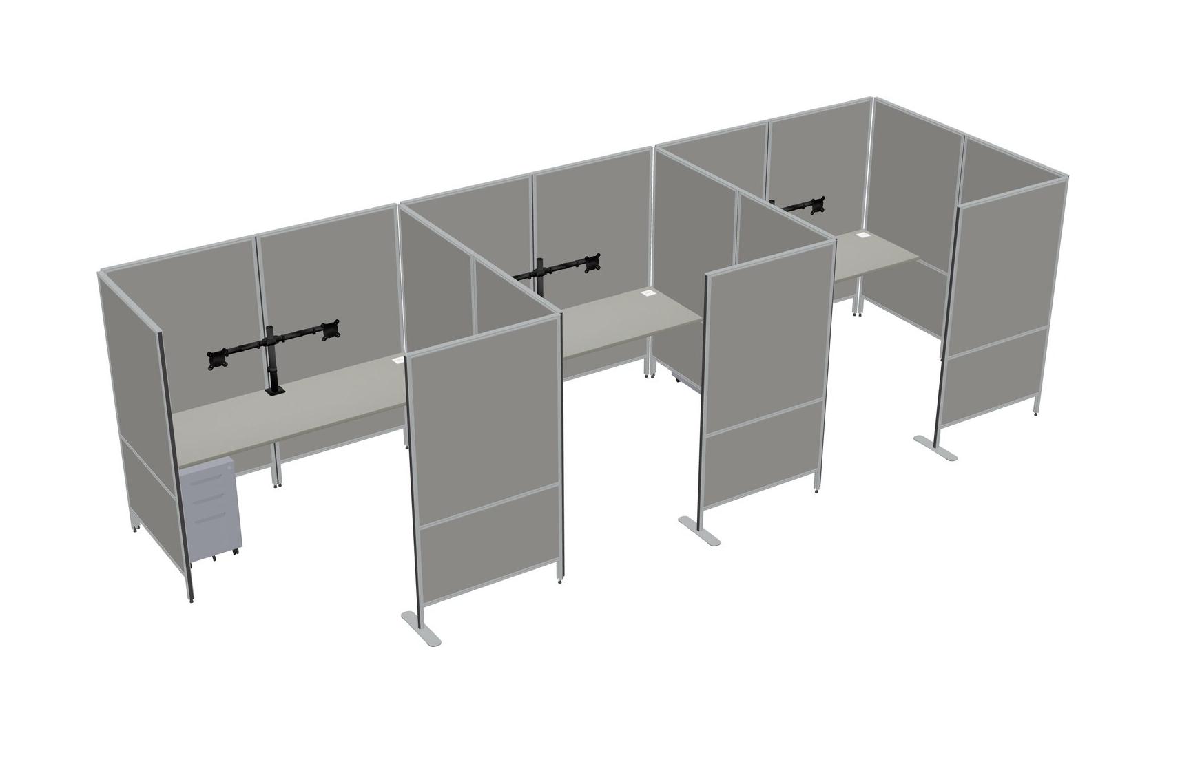 Grey Shadows Flexible Panel System With Privacy For 3 + Metal Mobile Drawers + Monitor Arm (double Arms)