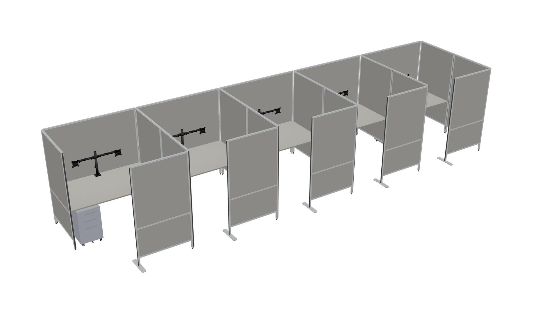 Grey Shadows Flexible Panel System With Privacy For 5 + Metal Mobile Drawers + Monitor Arm (double Arms)