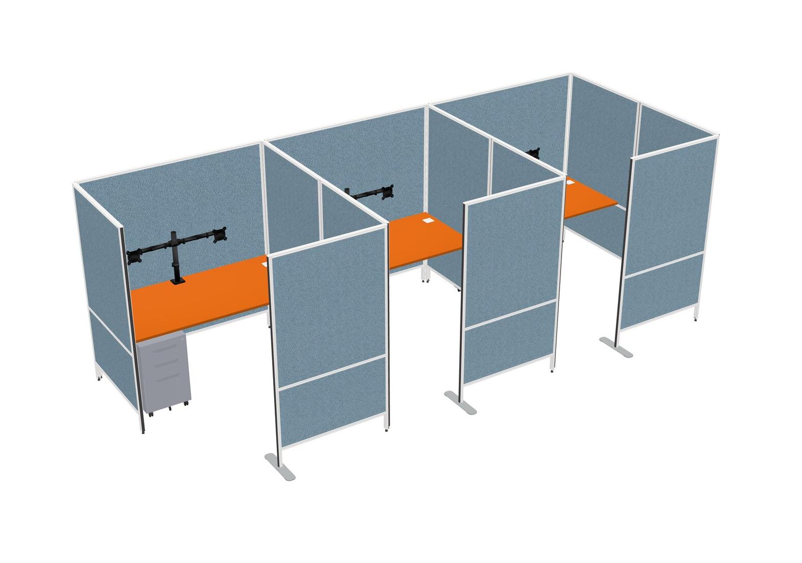 Orange Flexible Panel System With Privacy For 3 + Metal Mobile Drawers + Monitor Arm (double Arms)
