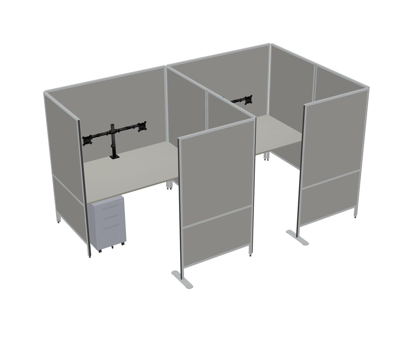 Grey Shadows Flexible Panel System With Privacy For 2 + Metal Mobile Drawers + Monitor Arm (double Arms)