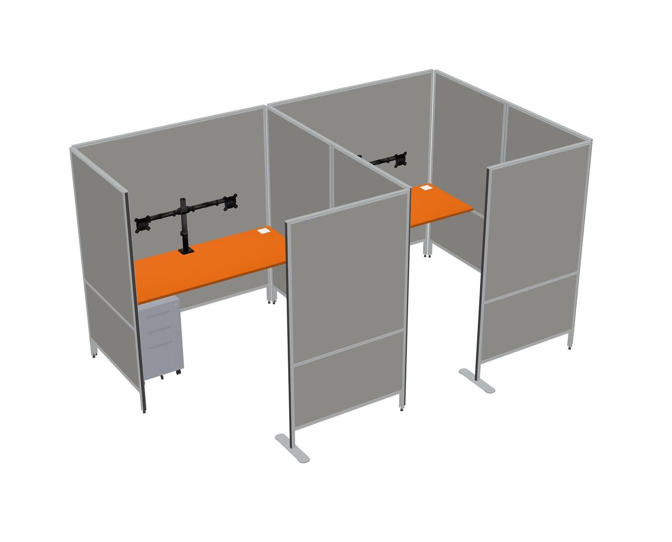 Orange Flexible Panel System With Privacy For 2 + Metal Mobile Drawers + Monitor Arm (double Arms)