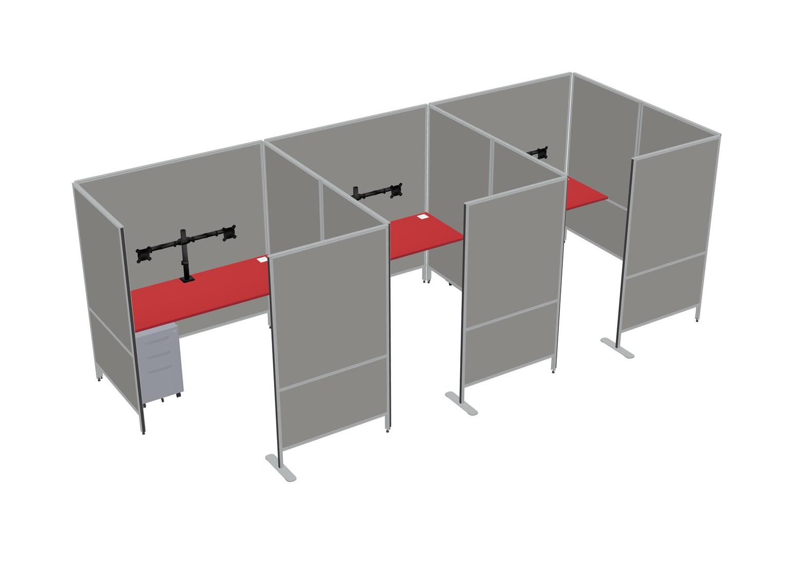 Prism Red Flexible Panel System With Privacy For 3 + Metal Mobile Drawers + Monitor Arm (double Arms)