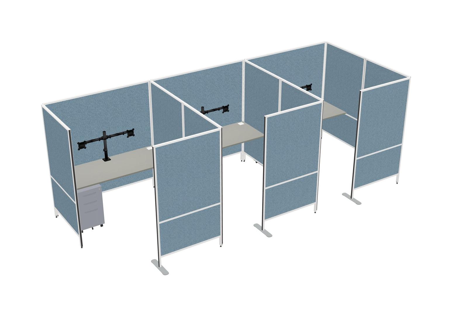Grey Shadows Flexible Panel System With Privacy For 3 + Metal Mobile Drawers + Monitor Arm (double Arms)