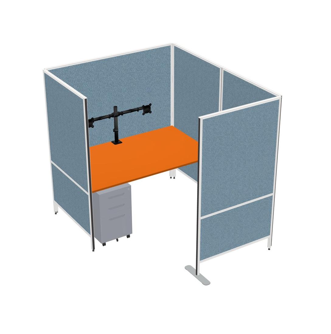 Orange Flexible Panel System With Privacy For 1 + Metal Mobile Drawers + Monitor Arm (double Arms)