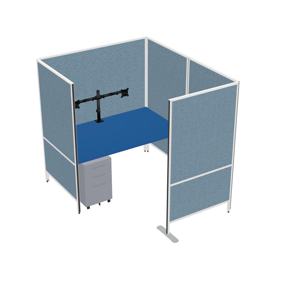 Prism Blue Flexible Panel System With Privacy For 1 + Metal Mobile Drawers + Monitor Arm (double Arms)