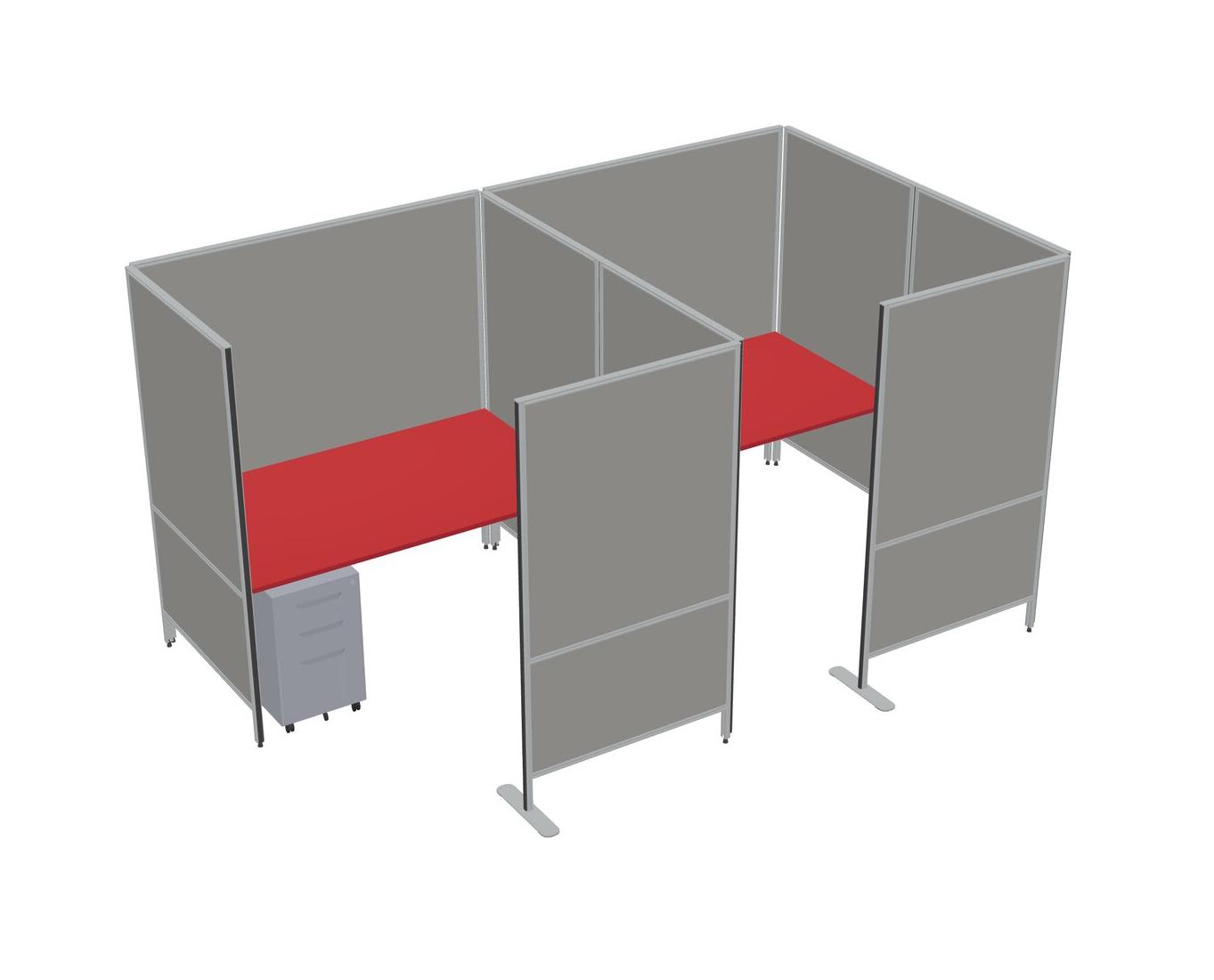 Prism Red Flexible Panel System With Privacy For 2 + Metal Mobile Drawers