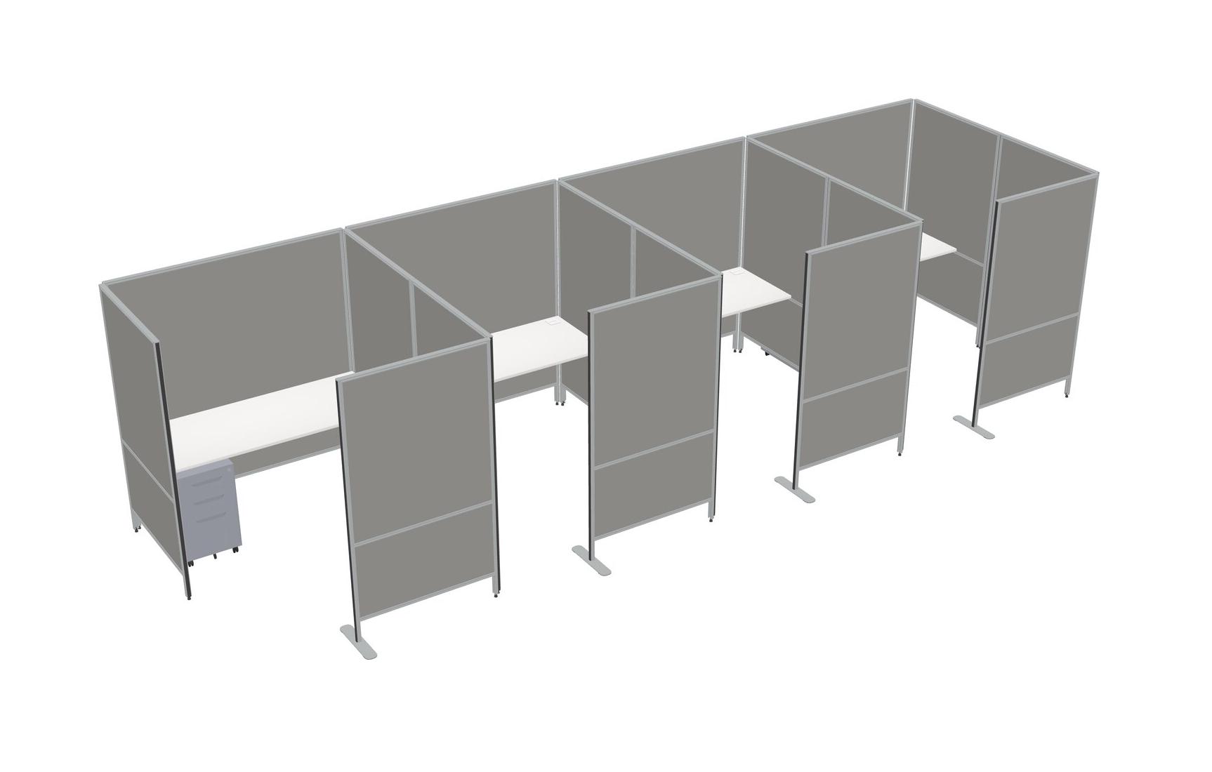 White Flexible Panel System With Privacy For 4 + Metal Mobile Drawers