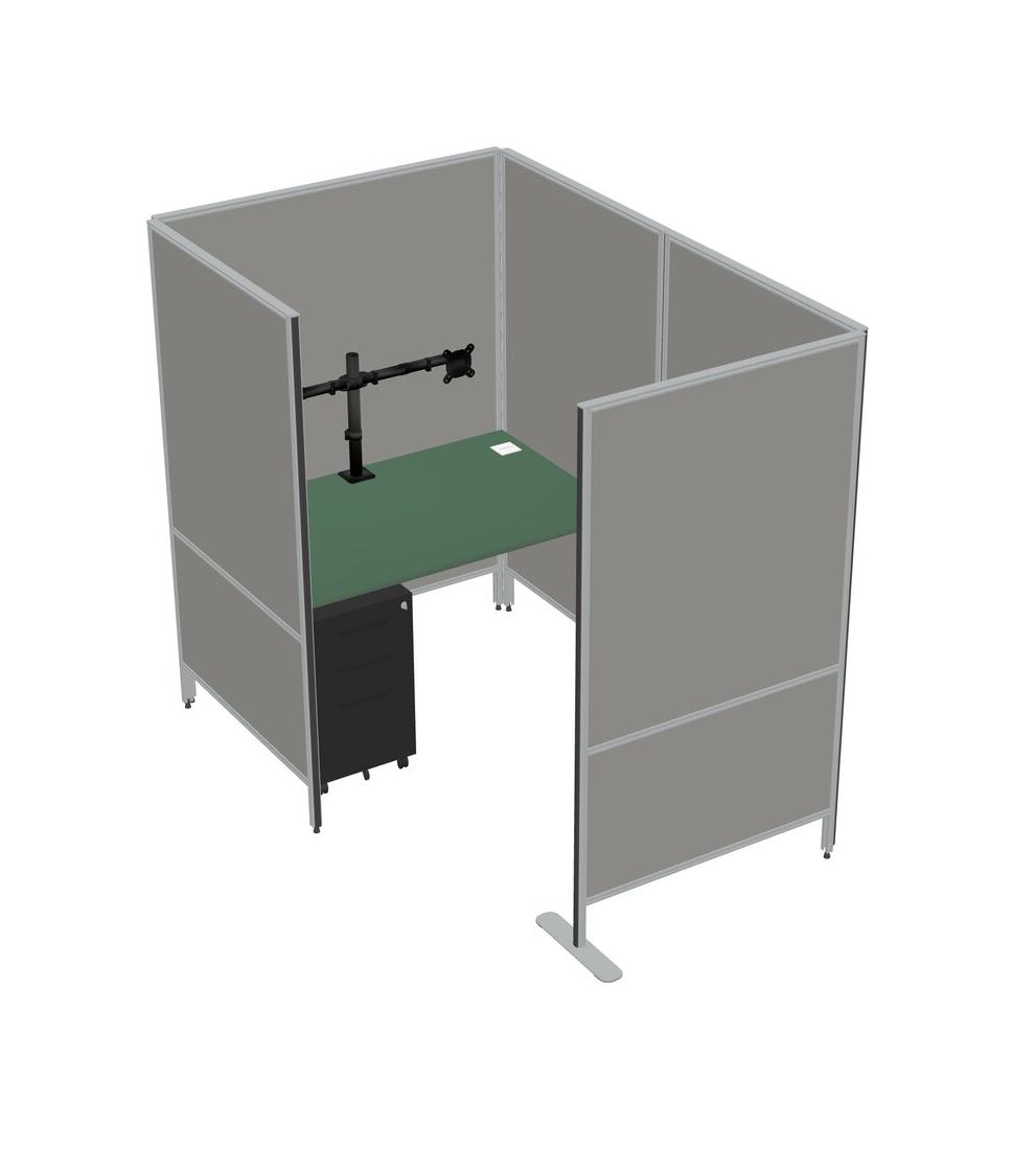 Green Small Private Panel System + Metal Mobile Drawers + Monitor Arm (double Arms)