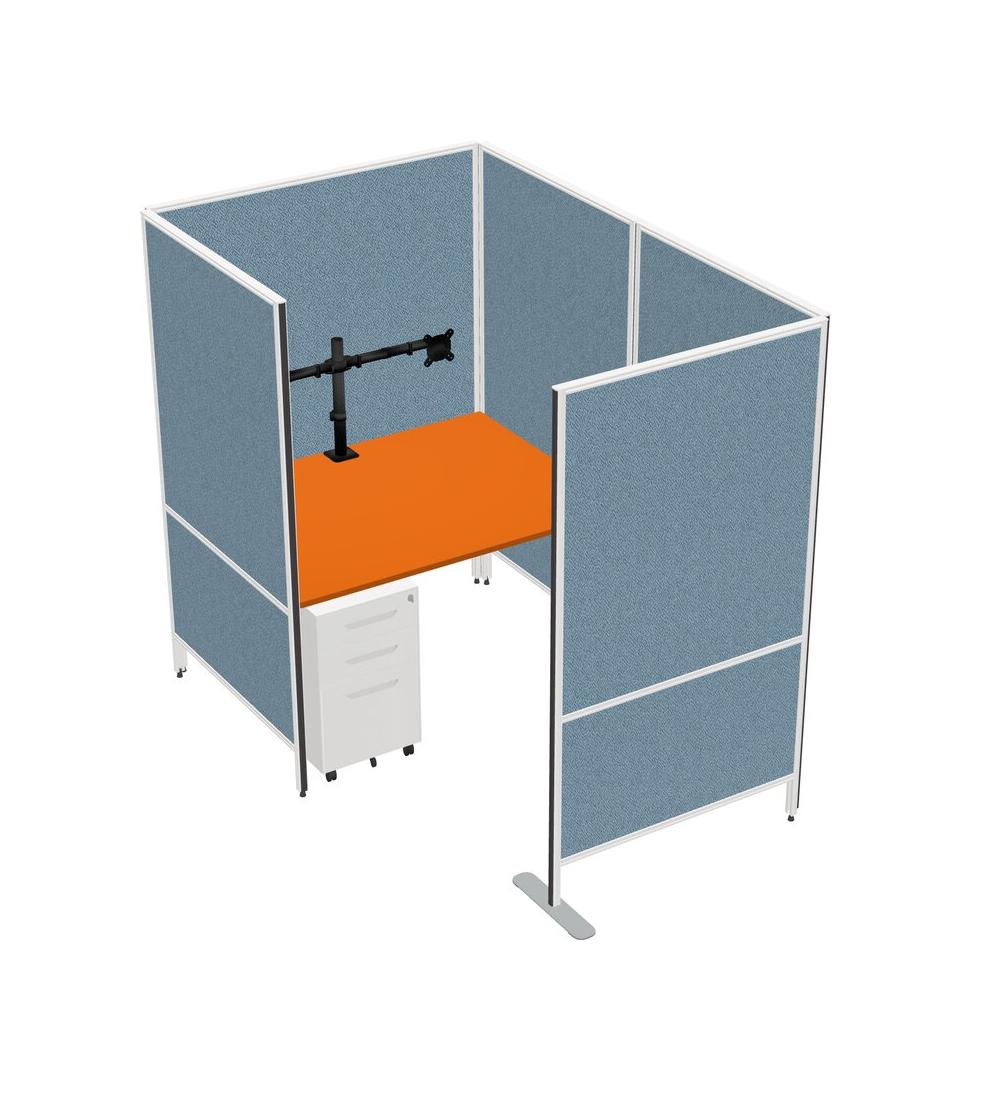 Orange Small Private Panel System + Metal Mobile Drawers + Monitor Arm (double Arms)