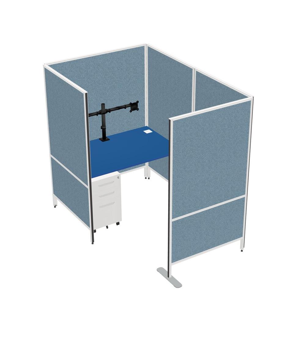 Prism Blue Small Private Panel System + Metal Mobile Drawers + Monitor Arm (double Arms)