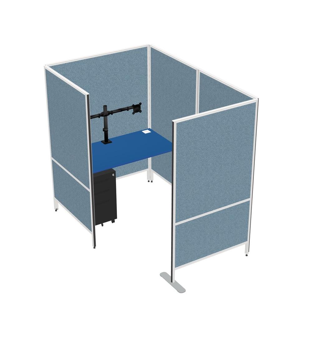 Prism Blue Small Private Panel System + Metal Mobile Drawers + Monitor Arm (double Arms)