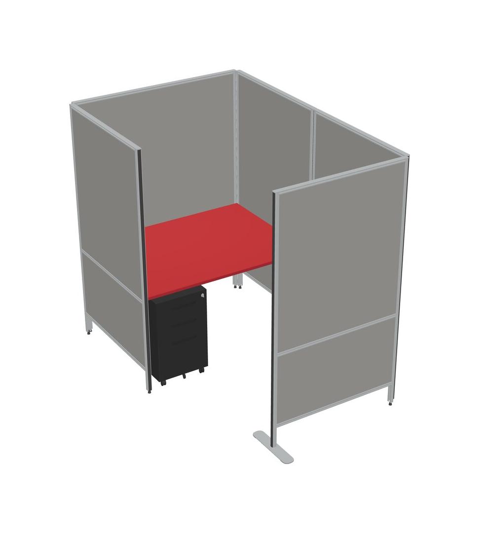 Prism Red Small Private Panel System + Metal Mobile Drawers
