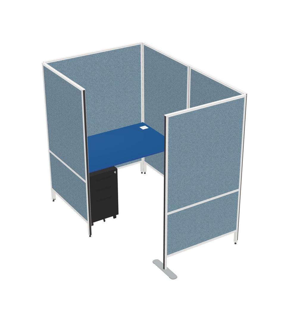 Prism Blue Small Private Panel System + Metal Mobile Drawers
