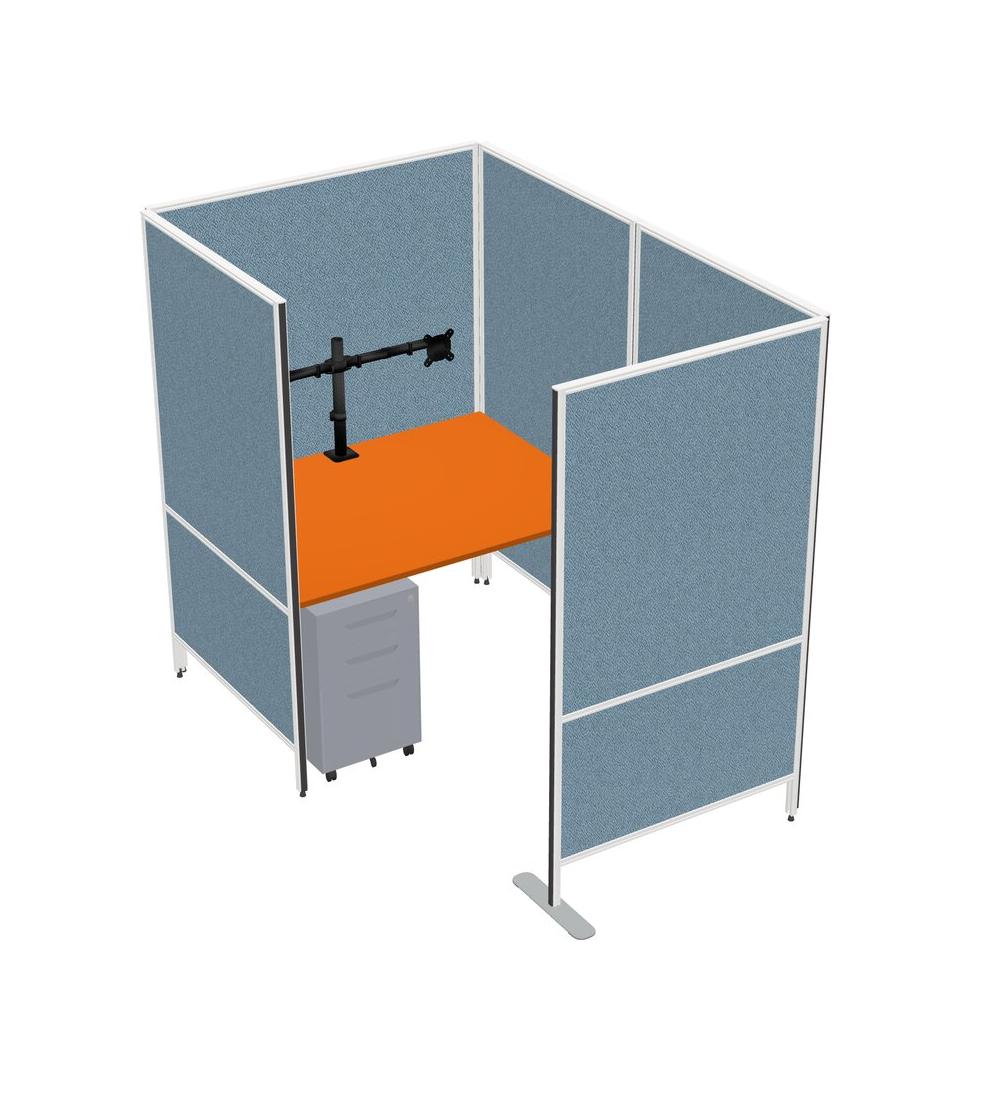 Orange Small Private Panel System + Metal Mobile Drawers + Monitor Arm (double Arms)