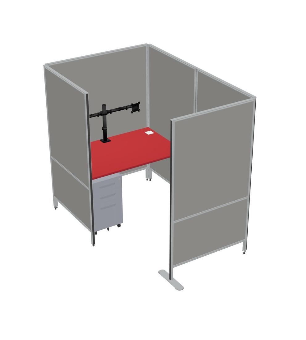 Prism Red Small Private Panel System + Metal Mobile Drawers + Monitor Arm (double Arms)