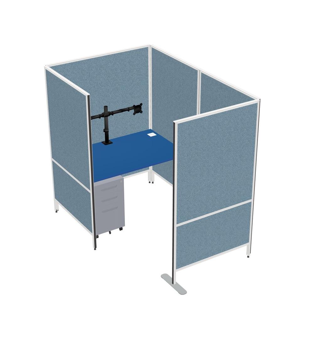 Prism Blue Small Private Panel System + Metal Mobile Drawers + Monitor Arm (double Arms)