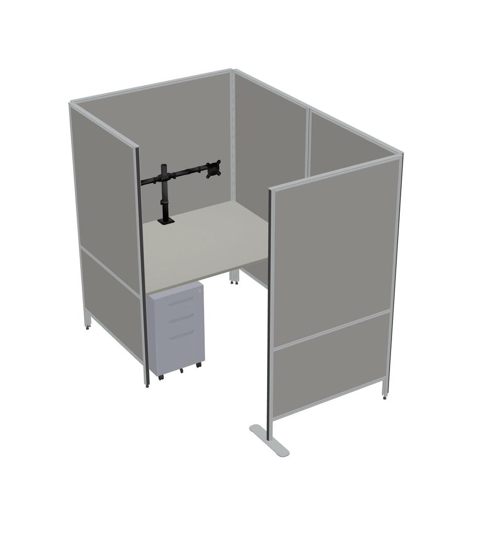 Grey Shadows Small Private Panel System + Metal Mobile Drawers + Monitor Arm (double Arms)