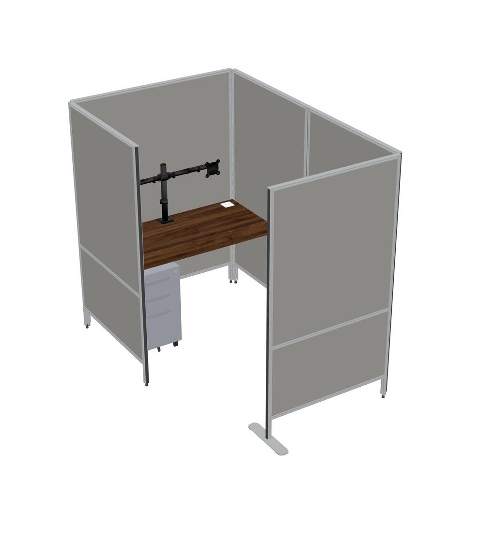 Columbia Walnut Small Private Panel System + Metal Mobile Drawers